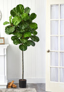 Create a natural sense of greenery in your home or office this vibrant artificial tree designed with oversized fiddle leaf fig leaves in glossy, verdant hues that look incredibly lifelike, sitting atop slender, stabilized steams. A year-round (faux) favorite amongst interior decorators, this artificial fiddle leaf fig tree stands 6.5 feet high from an accompanying nursery planter and would easily provide year-round freshness to any space it inhabits.