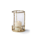 Introducing the Baldwin Hurricane Candle Holder, a masterpiece that effortlessly enhances any room with its golden glow. Inspired by the elegance of bamboo, its metal structure exudes sophistication, while the seeded glass insert softens the light, creating a warm, inviting ambiance. This versatile piece transcends the ordinary, serving as a lantern, pillar candle holder, and glass candle holder all in one. Perfect for those who appreciate the finer things in life, the Baldwin Hurricane Candle Holder is a timeless addition to your decor, illuminating your space with its exquisite beauty and serene light.