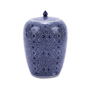 This high-fired Blue and White Porcelain Ginger Jar is a traditional imperial style of China. Thrown and painted entirely by hand, with visible brush marks attesting to the artist's skill and devotion to the craft. The ivory background—lends a soft, subtle contrast to the design.