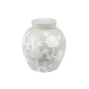 Flat Top Cherry Blossom Jar, Light Green