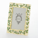 Unveil the timeless elegance of the Ivy Gold Picture Frame. Crafted in gold-finished pewter, the intricate ivy vine pattern, adorned with hand-set clear European crystals and faux pearls, showcases meticulous artistry. The celadon green-toned guilloché style hand-enameling adds a touch of sophistication, A perfect fusion of elegance and glamour, it's an ideal wedding picture frame or a thoughtful gift for any occasion. Let your photos shine in the luxurious embrace of this crystal-adorned masterpiece..