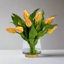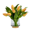 Add a burst of vibrant elegance to your home with the Orange Tulip Silk Flower Arrangement in Glass. This stunning arrangement features lifelike tulips in a rich orange hue, beautifully complemented by lush green foliage. Arranged in a chic glass vase, it brings the freshness and charm of springtime indoors, without the need for any upkeep. Perfect for a centerpiece on your dining table or as a delightful accent in your living room, this silk arrangement effortlessly enhances any space with its warmth and vivid color. Let these beautifully crafted tulips bring a sense of joy and sophistication to your decor, offering a splash of nature’s beauty that lasts all year round.