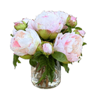 Pink Artificial Peony Flower Arrangement in Tall Glass Vase - 10"