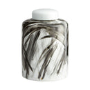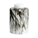 This large abstract art inspired container is a fine addition to stylish storage solutions. Contemporary white and bold black sweeps of color make this ceramic charmer ideal for thoroughly modern living room or family room.