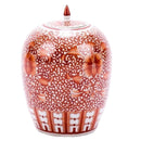 Lustrous yet subtle this traditional lotus with sprawling vines and petals lends this ginger jar a striking beauty. Deep coral hues with its long-lasting sheen and detailed motifs provides a visual contrast. Hand made from high-fired porcelain this beautiful porcelain is hand drawn by skilled artisans.