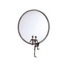 Functional minimalist design meets the decorative in this raw steel wall mirror, great in any living room or industrial home office. A detailed iron sculpture in the form of a human hangs from the geometric silhouette, creating an interesting visual.