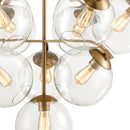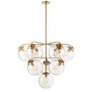 Step into a world of refined elegance with the Collective 10-Light Brass Tiered Chandelier—a true masterpiece that redefines modern luxury for your living room. Inspired by mid-century modern design, its understated yet dynamic framework features angled sockets that cast mesmerizing reflections within the expansive glass globes. Cleverly held by metalwork that effortlessly conforms to each curve, this chandelier light fixture exudes a warm, opulent glow. Finished in a rich brass tone, it serves as a sophisticated gold chandelier that elevates your décor with both style and substance. Perfect for creating a captivating focal point in any room, the Collective chandelier invites you to embrace timeless glamour and contemporary flair.