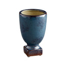This organically elegant, tabletop vase features a blue glaze finish on ceramic, chalice silhouette. The gradient glaze of soft dots adorns the surface from top to bottom. Just one part of a trio, these show-stopping accents are ideal in a grouped collection, or perfectly pleasant displayed individually with floral arrangements. Enhance your living room or dining space ensemble with one of these intriguing rustic vessels.