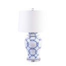 This vintage porcelain temple jar table lamp is a beautiful addition to any room. The porcelain jar is adorned in beautiful blue and white, and the acrylic base provides a modern touch. The lamp emits a warm, welcoming light, making it the perfect way to add a touch of elegance to any space.