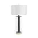 The standout shape of this table lamp is reminiscent of 1920's elegance. The Messier table lamp boasts a generous proportion in its white linen shade. A single 100w medium base bulb provides ample illumination from the dimmable light source. Coupled with a gorgeous clear glass, marble, and gunmetal accents to complete the look of this luminary, the Messier lamp is perfect for any modern bedroom, transitional entryway, or mid-century modern living room ensemble.
