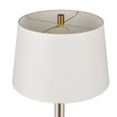 Introducing the Roseden Gold Floor Lamp—a stunning fusion of classic elegance and contemporary design that transforms any living space. Crafted in an aged brass finish, its innovative design features stacked flat metal disks that gracefully direct light upward, creating a warm, ambient glow. The lamp is crowned with a round, hardback shade in crisp white linen, adding both softness and sophistication to your décor. Perfect for your living room, bedroom, or hallway, this modern floor lamp not only illuminates your space but also serves as a chic accent piece that elevates your interior design. Embrace the art of ambient lighting with the Roseden Gold Floor Lamp and let your home shine with timeless style.