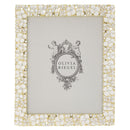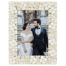 Delicate dogwood blossoms picture frame richly cast in gold finished pewter with intricate ivory hued hand-enameling and hand-set clear European crystals. Hand-set clear European crystals add a delicate sparkle, while the elegant champagne moiré silk back provides a refined canvas for your photos. Designed for versatility, its easel supports both vertical and horizontal displays, making it an exquisite wedding picture frame or a heartfelt gift for any special occasion. Durable and tarnish-resistant, this luxury photo frame arrives in a signature luxury gift box, ready to transform your memories into timeless art.