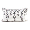 Accent a favorite chair or other piece of furniture with a luxurious throw pillow covered with bead, stone, and zardosi intricate work for a sophisticated look. Set off dark colors and patterns with this 12 x 20 throw pillow or pair it with similar neutrals for a modern tone-on-tone look. No matter how you use this gorgeous pillow backed in velvet it is sure to lend a chic air to any space.White, pink and blue.