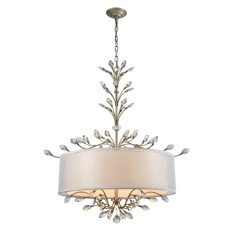 - Shade Details: Shade Included - Silver Organza Shade with White Fabric Inner