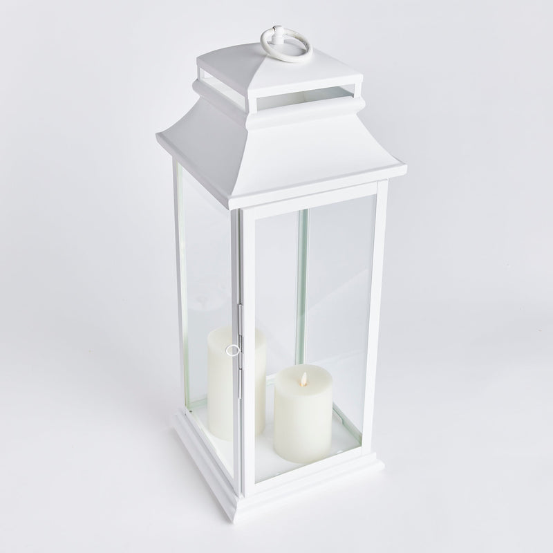 The Matilda Outdoor Lantern in matte white is a perfect blend of elegance and durability. Crafted from powder-coated stainless steel, this tall candle lantern is designed to withstand the elements. With included drain holes, it keeps rain away, making it an ideal candle holder for your patio or garden. Illuminate your outdoor spaces with the sophisticated charm of the Matilda Outdoor Lantern, creating a warm and inviting atmosphere.