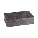Introducing Puma Leather Decorative Box–an organic-boho leather container. A sleek, textured grey finish adorns the exterior of this decorative box. Store your jewelry, small electronics, trinkets, or any other personal items in the Puma container. This tabletop accessory is available in a small and large option for added versatility. Display on a bedroom dresser, powder room counter, or sitting room coffee table to add a natural elegance to your ensemble.