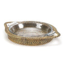 Introducing the Round Pie Plate Serving Dish—an exemplary fusion of practicality and picturesque design. Crafted with a resilient glass dish nestled in a beautifully handwoven basket, this serving piece is ideal for your favorite pies and savory desserts. The natural finish of the woven basket not only insulates but also transforms each presentation into a visual celebration of artisanal beauty. Whether used as a baking dish or a serving platter, it brings a touch of elegance to your culinary creations and a warm, inviting look to your table.